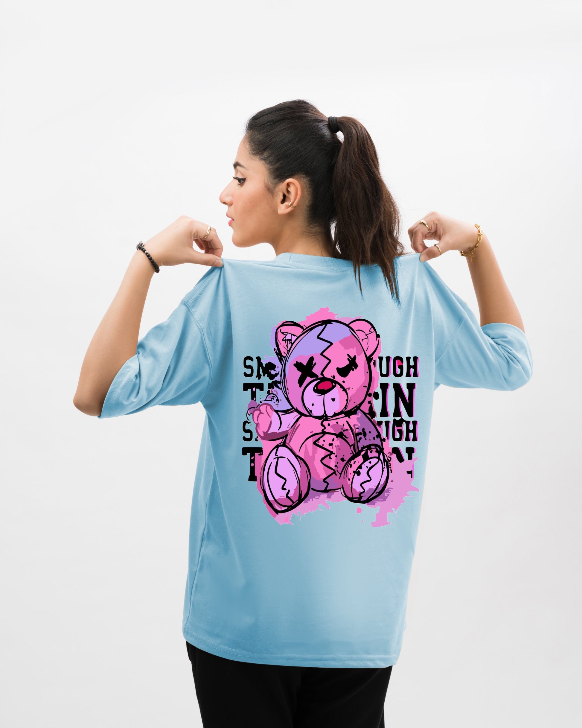 Bear Dope Graphic Drop Shoulder Oversized Tee Blue