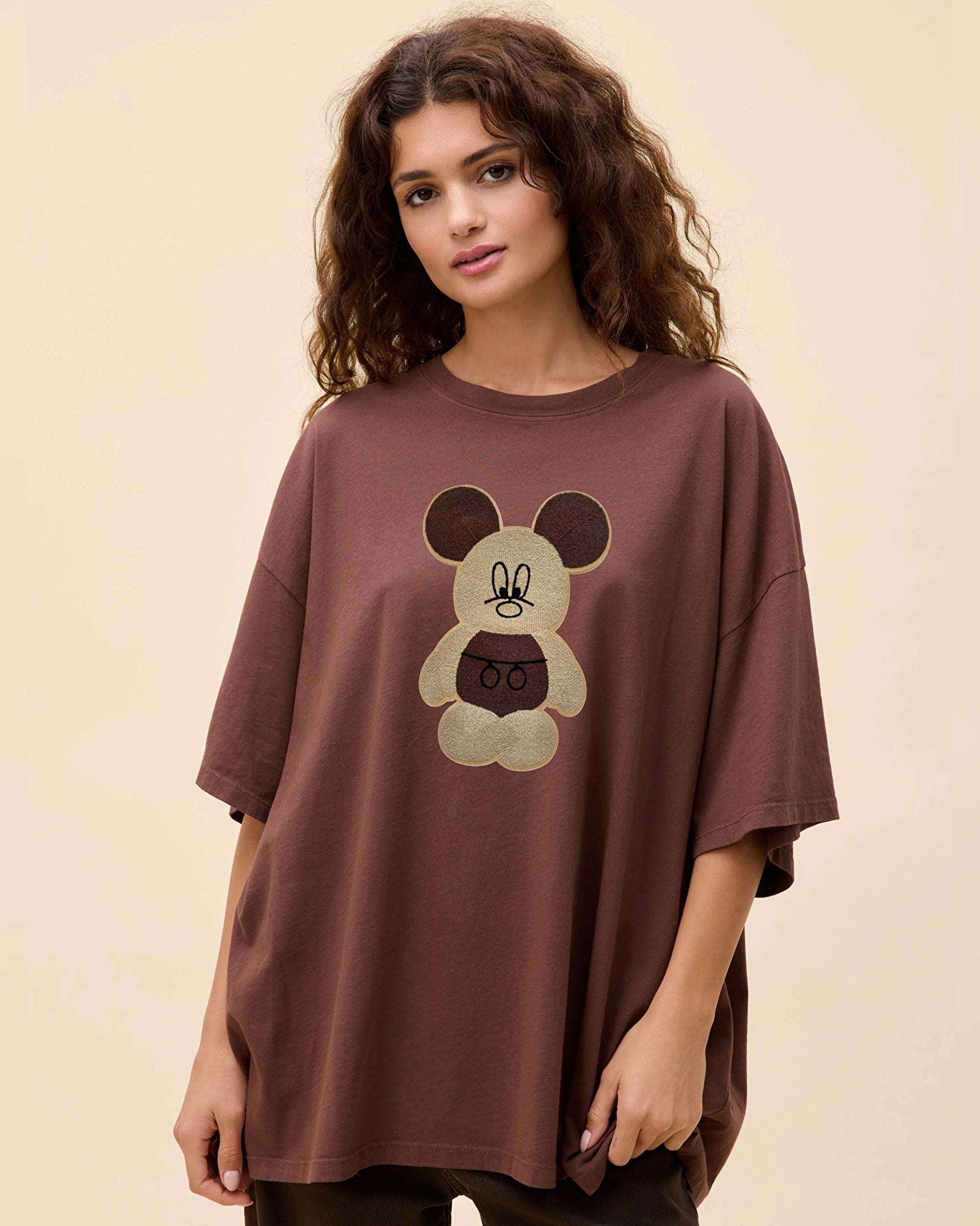 Bear Hugz Embroidered Patched Drop Shoulder Oversized Tee Brownie