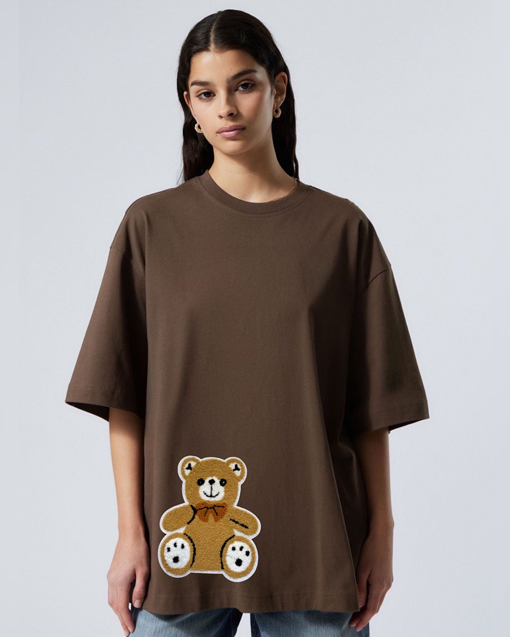 Cocoa Bear Embroidered Patched Drop Shoulder Oversized Tee Brownie