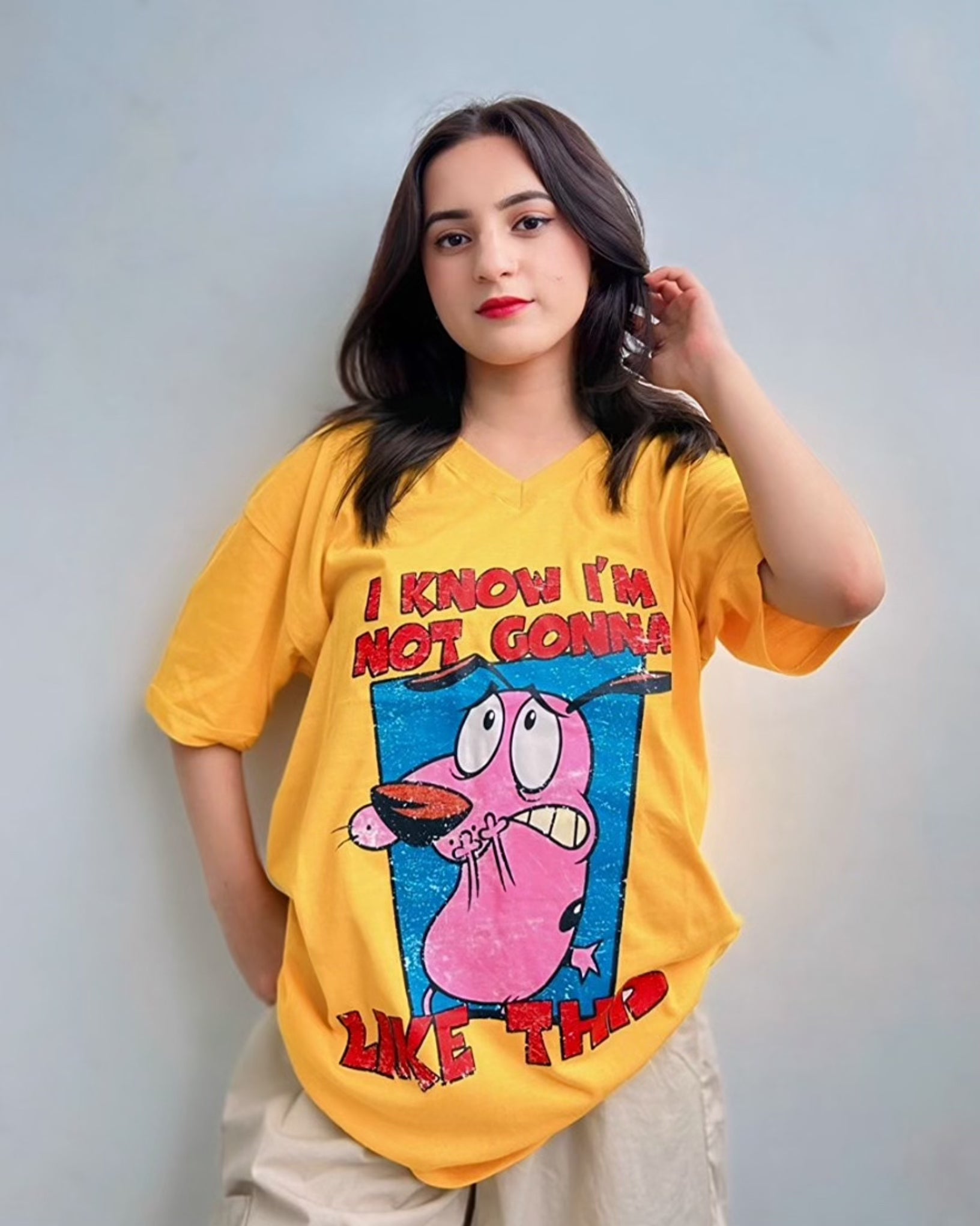 π Courage Dog Graphic Vneck Drop Shoulder Oversized Tee Yellow (100% off)