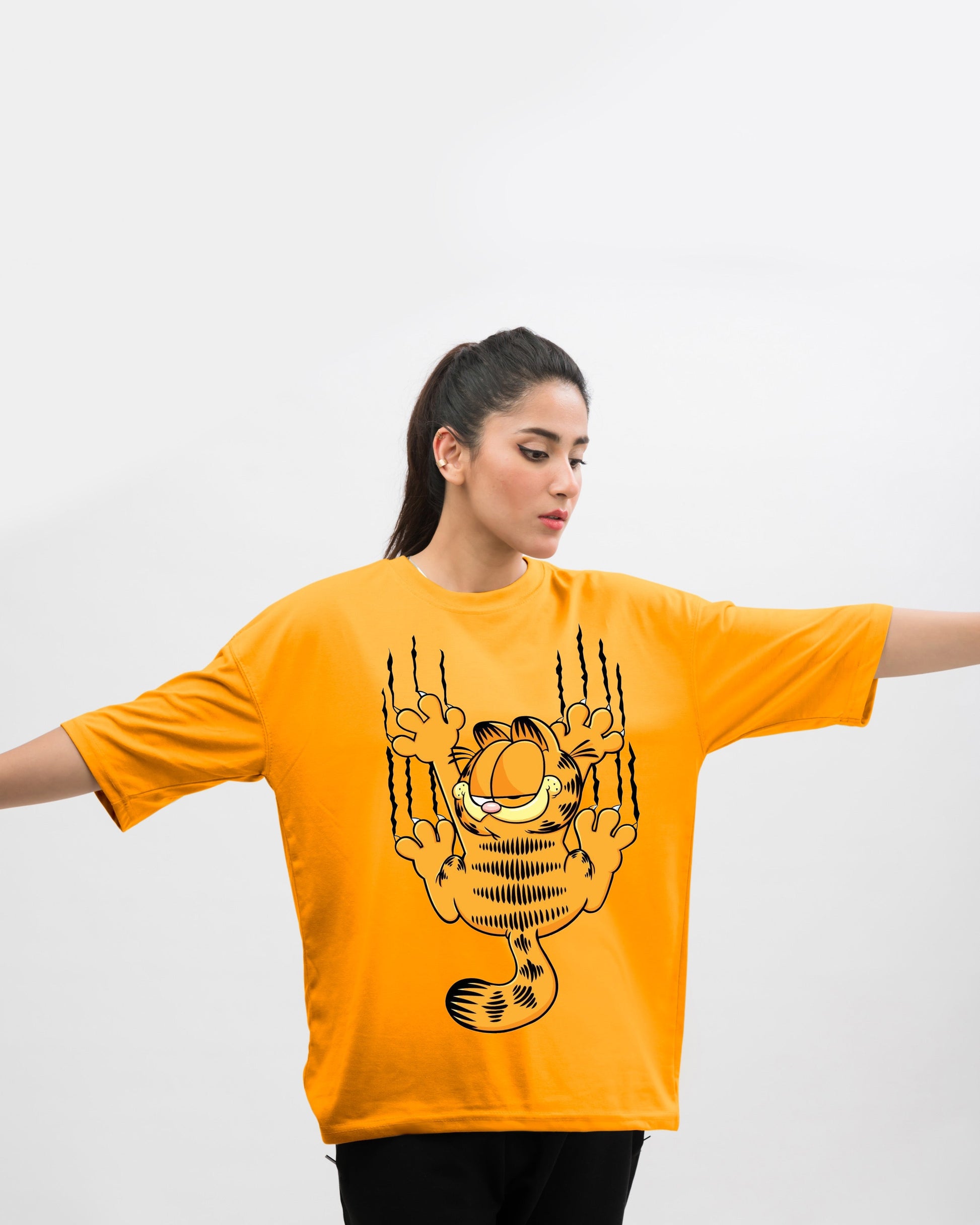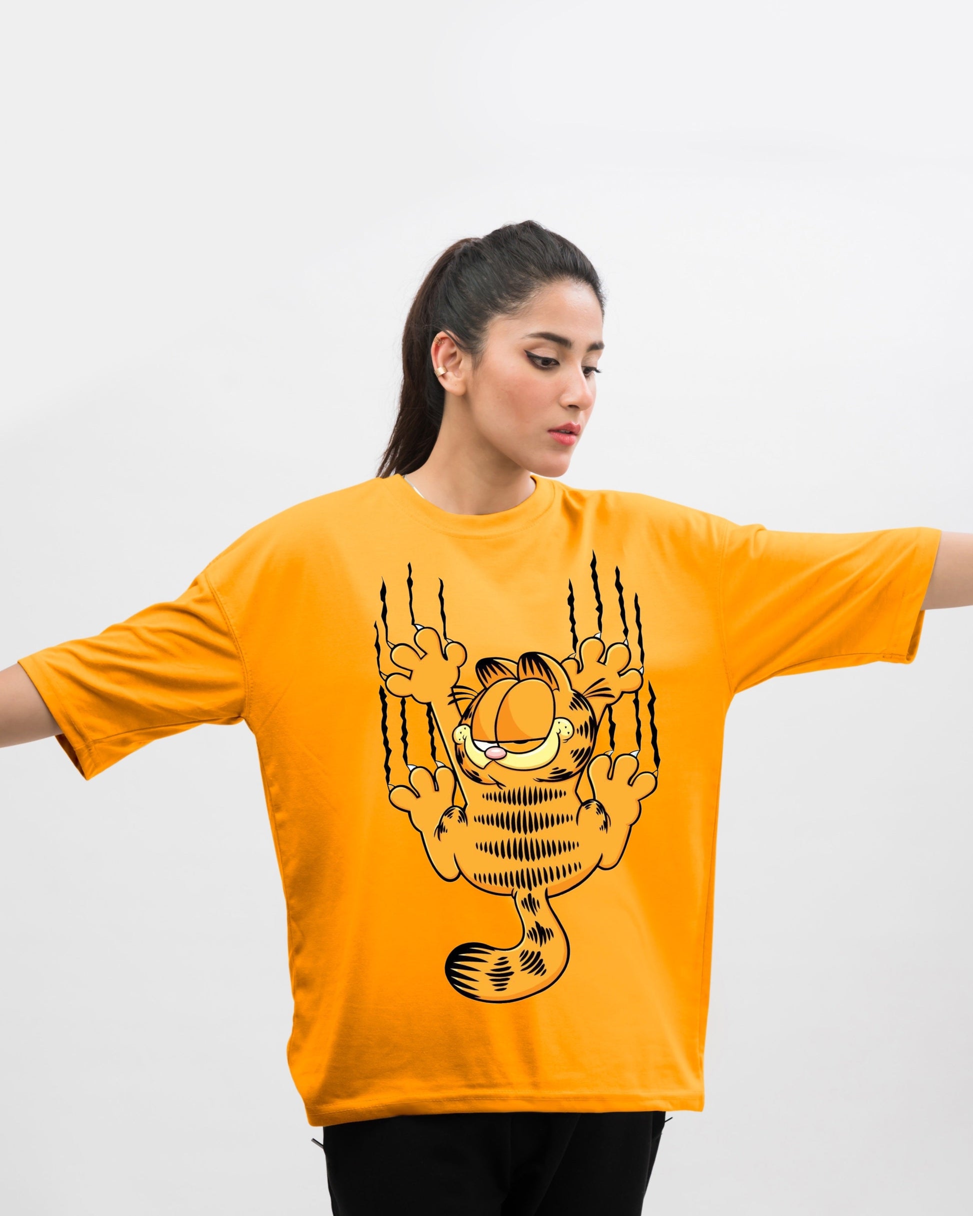 Garfield Graphic Drop Shoulder Oversized Tee Yellow